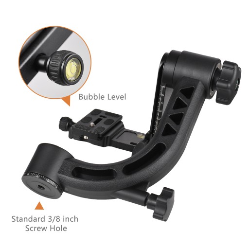 - 【Szerokie zastosowania】 Otwór na śrubę 3/8 cala na dole pozwala łatwo zainstalować głowicę na statywie za pomocą śruby 3/8 cala. Głowica statywu z gimbalem dobrze współpracuje z super teleobiektywami, a jej potężna regulacja kąta i pozycji jest odpowiednia do robienia zdjęć latających ptaków.