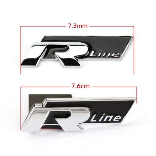 znaczek EMBLEMAT METALOWY naklejka - R LINE - na VOLKSWAGENA / VW GOLF tiguan TOURAN polo TOUAREG i nie tylko... 73 mm metalowy EMBLEMAT / ZNACZEK - RLINE / R LINE - jest podklejony MOCNĄ taśmą dwustronną 3M, która ułatwia montaż i demontaż napisu. NAPISY są - wypukłe 3D. Zamiennik najwyższej jakości, wykonany ze stopu cynku, chromowany, montowany na taśmę dwustronną.