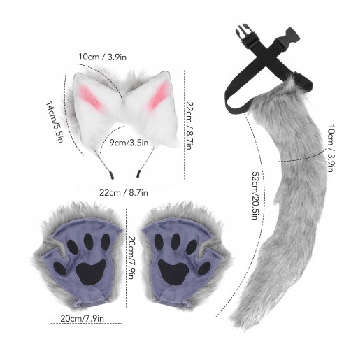 3. DLA KAŻDEGO WIEKU: Zestaw zawiera jeden ogon, jedną opaskę na uszy i parę pluszowych rękawiczek. Jest to rozmiar uniwersalny i odpowiedni zarówno dla dzieci, jak i dorosłych.