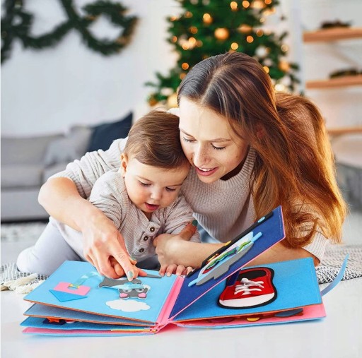 ❤️ Filcowa książeczka dla maluchów posiada wiele funkcji, takich jak obracanie rączek, wiązanie sznurowadeł, zegar, pogoda, mycie zębów hipopotama, tabliczka antystresowa, kolorowa łamigłówka, gra w dopasowywanie, wyciąganie rzodkiewki.
