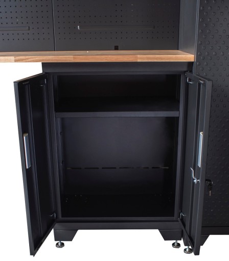 - Tablice Perforowane: Znajdujące się na drzwiach szaf, umożliwiają zawieszenie narzędzi dla lepszej widoczności