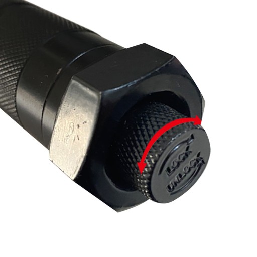 ➖ Wybierz odpowiednią wartość na skali Nm lub KGS po czym odkręć śrubę na końcu rękojeści klucza.