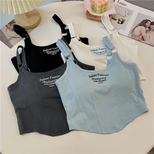 Women Print Sleeveless Crop Top Tank Tops Sexy Vest Letters Y2K Solid Short Women's T-shirt Camisole Crop Top with Bra Pad
