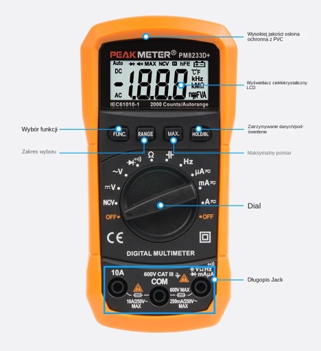⭐ Przenośność i Wygoda - Wielkość tego miernika pozwala na jego łatwe przenoszenie, a solidna konstrukcja sprawia, że jest on odporny na trudne warunki pracy.
