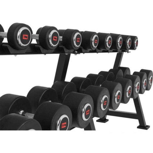 Dzięki temu umieścisz na niej całą kolekcję swoich hantli, a całość bardzo estetycznie i elegancko będzie prezentować się w Twojej domowej siłowni.