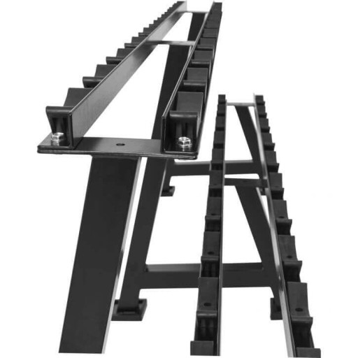 Stojak marki Gorilla Sports to idealny wybór dla każdego, kto chciałby zachować porządek w swoim sprzęcie siłowym. Stojak posiada 20 uchwytów na hantle, bez trudu więc pomieścisz tam całą serię hantli.