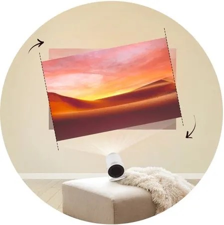 The Freestyle automatycznie koryguje przekrzywiony obraz i dopasowuje go do powierzchni za każdym razem, uzyskując prostokątny ekran. Jedyne, co musisz zrobić, to go włączyć.