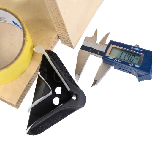 2 stolarskie uchwyty kątowe do skręcania korpusów formatek pod kątem 90 stopni dla grubości płyt ok. 18.1 - 18.4mm