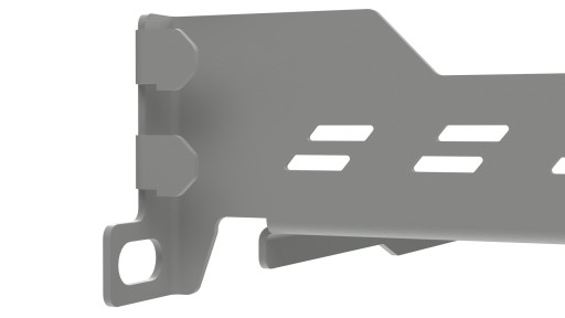 - Unikalny system mocowania na dwie śruby M6 oraz specjalnie zaprojektowane haczyki pozwalają na wstępne zamocowanie półki bez użycia śrub. To sprawia, że montaż jest szybszy i prostszy niż kiedykolwiek wcześniej!
