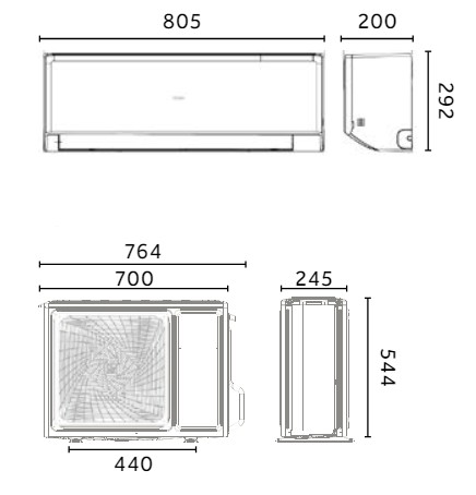 - Wymiary szer./gł./wys. [mm]: 805/200/292