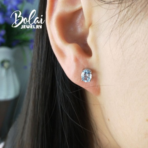 Серьги с натуральным аквамарином и драгоценным камнем из стерлингового серебра 925 пробы.