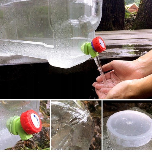 Konstrukcja kranu: pojemniki do przechowywania wody wykorzystują unikalną konstrukcję kranu, aby łatwo przenosić wodę i zapobiegać wyciekom.