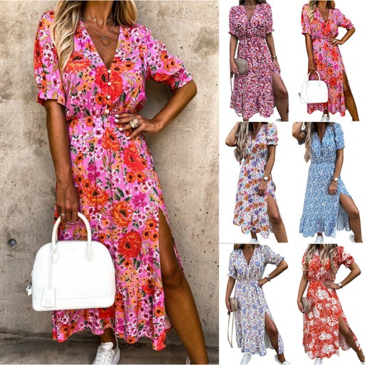 MODNA SUKIENKA DAMSKA LETNIA ZWIEWNA Z ROZCIĘCIEM