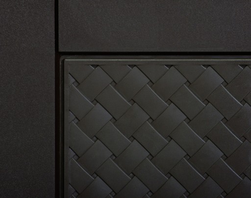 - Panele boczne wykończone są teksturą mozaikową oraz misterną fakturą inspirowaną naturalną bambusową lub rattanową plecionką,