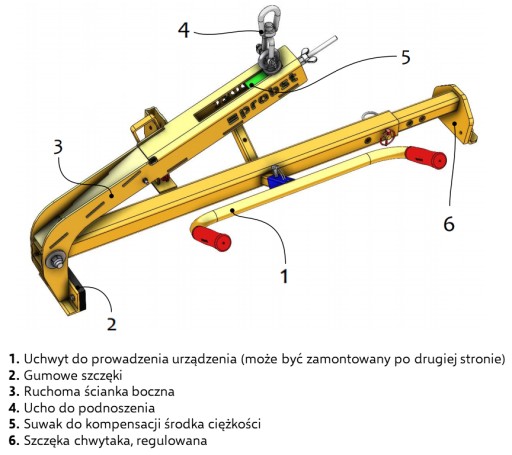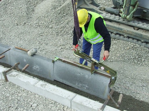 ✔️Chwytak jest wyposażony w samowyzwalacz. Samoczynnie zaciska się po podniesieniu i samoczynnie otwiera po położeniu krawężnika na podłożu,