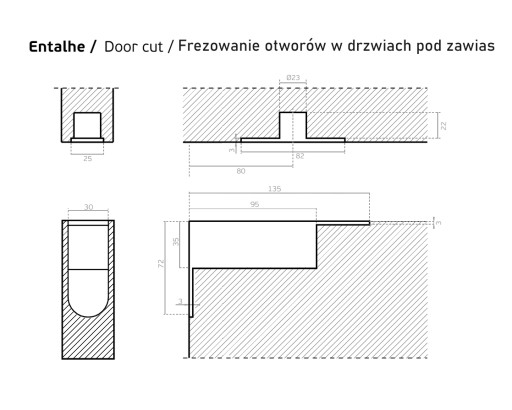 - Przystosowany do drzwi montowanych do stropu/ ościeżnicy/ nadproża/ sufitu