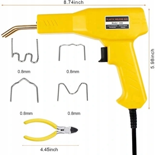 - - Ten zestaw naprawczy do tworzyw sztucznych do systemu spawania jest dostarczany z różnymi rodzajami gwoździ, aby spełnić różne potrzeby. Szkolenie nie jest wymagane, wystarczy kilka sekund, aby nauczyć się obsługi: zgrzewanie, implant gwoździa, naprawa otworów, lutowanie blach, cięcie na gorąco, wygładzanie na gorąco itp.