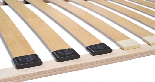 - konstrukcję stelaża tworzy 40 elastycznych listew brzozowych (20 po każdej stronie), które są zamocowane na bocznej ramie za pomocą solidnych uchwytów, przymocowanych zszywkami, co zapewnia estetyczny wygląd i trwałość