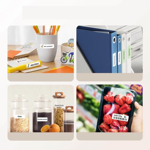 ✅ Świetnie sprawdza się do druku etykiet na: słoiki, przyprawy kuchenne, daty ważności produktów, opakowania leków, dokumenty, zeszyty szkolne, jako etykiety cenowe i wiele innych.