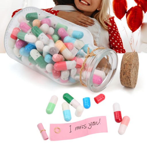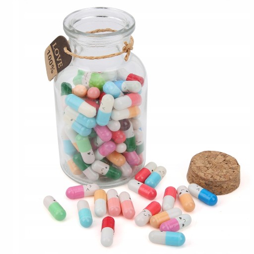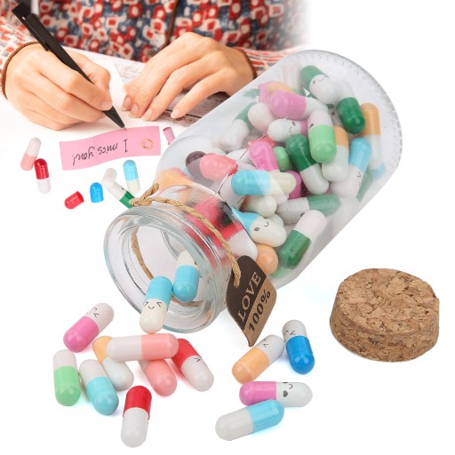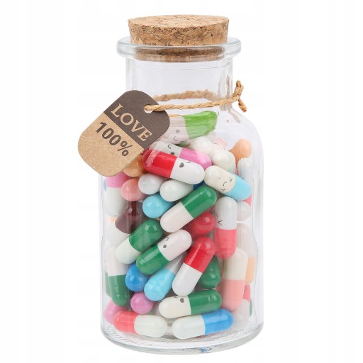 1. 1 szklana butelka, 100 uroczych kapsułek, w każdej kapsułce znajduje się papier listowy, bez informacji na papierze.
