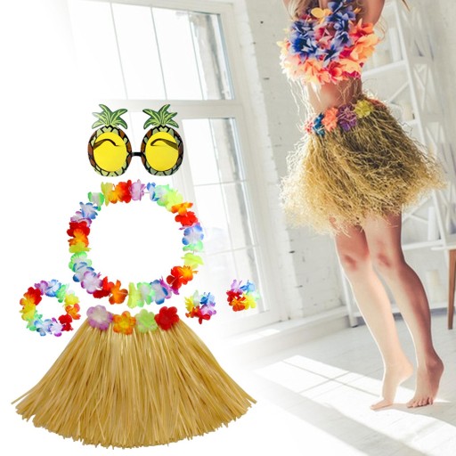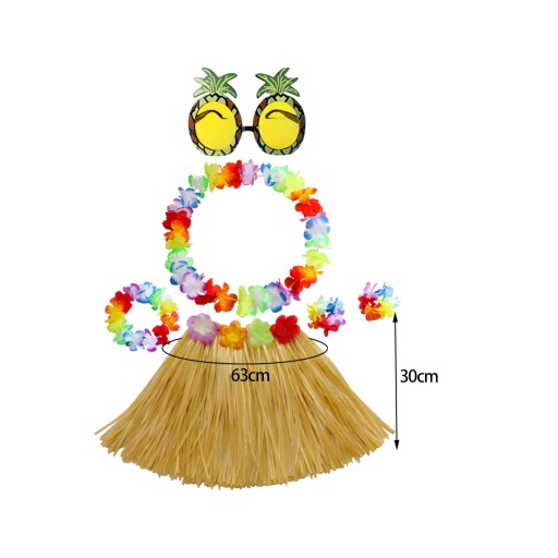 [Pakiet zawiera]: hawajska spódnica z trawy zawiera 4-częściowy zestaw girlandy spódnica z trawy okulary ananasowe