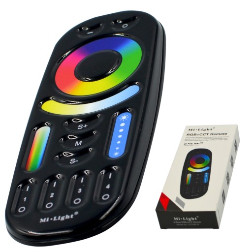Pilot FUT092B Mi-Light RGB/RGBW/RGB+CCT współpracuje ze wszystkimi kontrolerami do taśm(FUT035, FUT036, FUT037, FUT043, FUT044, FUT045), a także ze wszystkimi żarówkami(CCT, RGBW i RGB+CCT). Pilot umożliwia sterowanie od 1 do 4 niezależnych stref.