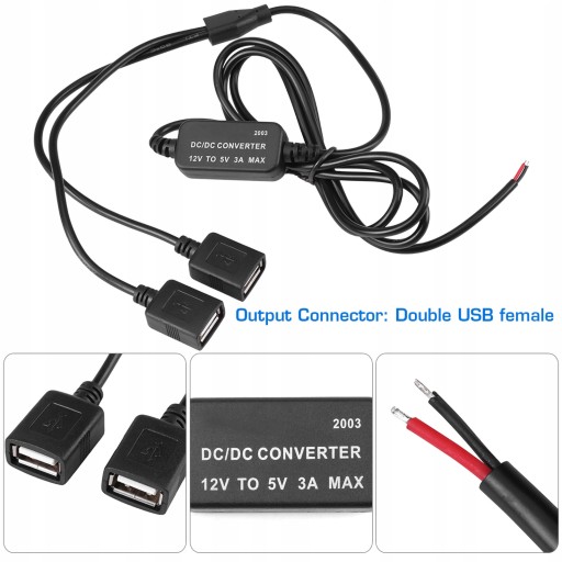 . 2 USB 5V 3A KONWERTER NAPIĘCIA DC 12V/24V
