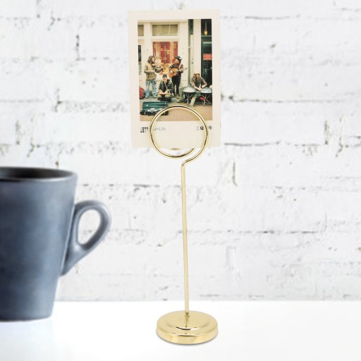 4. Metaliczna tekstura: Prosta linia przedstawia metaliczną teksturę. Praktyczna okrągła podstawa, którą można łatwo postawić na stole, stały klips, stała wizytówka