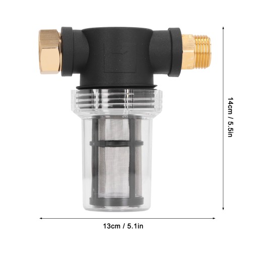 Cecha: 1. ŁATWY W MONTAŻU: Filtr wody w myjce ciśnieniowej ma gwint męski i żeński 3/4 cala GHT, do którego można łatwo podłączyć większość wlotów myjki ciśnieniowej, króciec wody i standardowy wąż ogrodowy