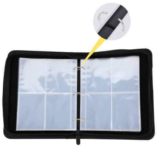 - Posiada 50 przezroczystych folii , każda podzielona na 4 pola. Karty można wkładać obustronnie (w jednym polu mieszczą się dwie karty).