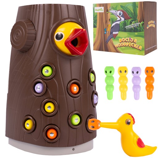 Aby zwyciężyć, dzieci muszą spróbować wyłowić jak najwięcej robaczków z dziupli, a następnie celnie trafić wprost do dzióbka ptaszka. To nie tylko przyjemność, to także trening zręczności, który rozwija umiejętności manualne, a jednocześnie zapewnia wspaniałą rozrywkę.