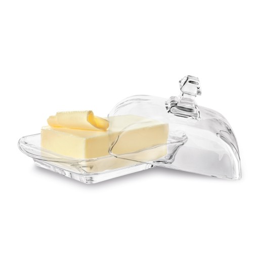 Maselniczka szklana Tadar pozwala estetycznie podać na stół masło lub kostkę twarogu. Pokrywka chroni, dlatego na dłużej zachowasz świeżość produktów. Maselnica powstała z trwałego szkła, dlatego długo będzie służyć w Twoim domu.