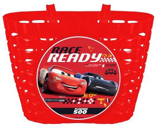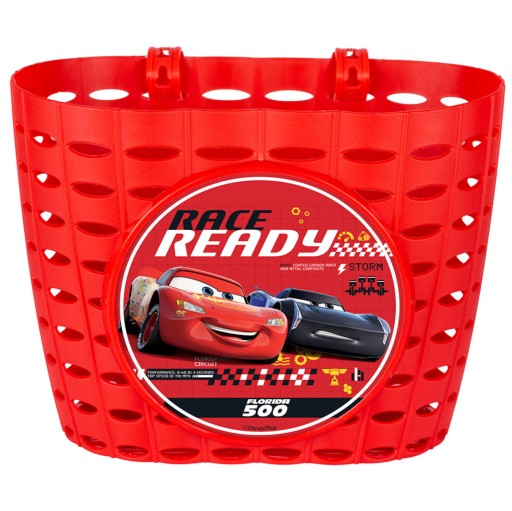 Koszyczek na kierownicę jest wykonany z kolorowego tworzywa sztucznego i ozdobiony naklejką z ulubionymi postaciami z bajek Disney. W bardzo prosty sposób mocuje się go do kierownicy za pomocą pasków załączonych w komplecie.
