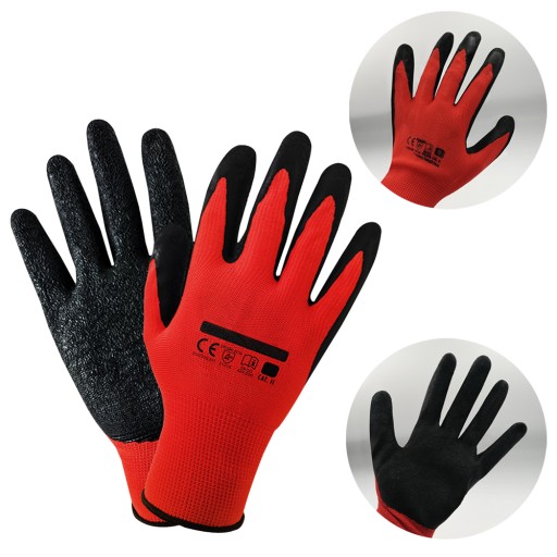 - Rękawice ochronne wykonane z poliestru, powlekane lateksem