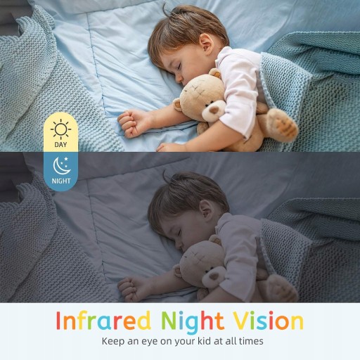 Szczycący się panewką 355 ° 55 ° T, kamera do monitorowania dzieci zdalnego sterowania pozwala 360 ° nadzorować cały pokój, zapewniając, że zawsze i wszędzie tam, gdzie to możliwe, masz dobry widok na swoje dziecko z dowolny kąt.