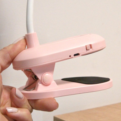 Bardzo ładna i mocna lampka biurkowa do czytania. Lampka na klips może być przypięta do biurka, stołu, stołów, szafki nocnej, ramy łóżka, garderoby i wielu innych przedmiotów.