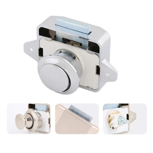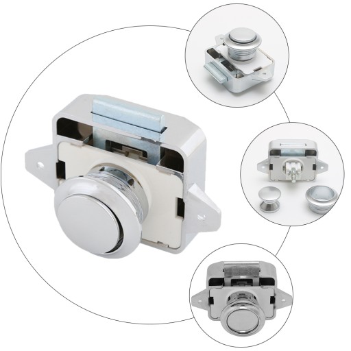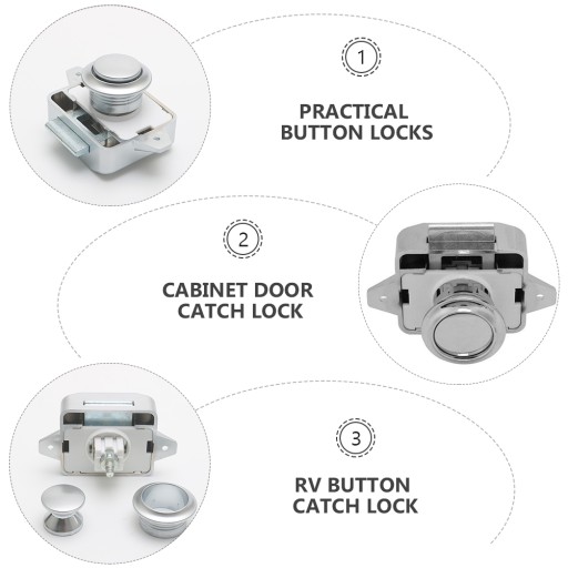 ✅W pełni funkcjonalny i łatwy w użyciu przyciskowy zamek do drzwi może być używany w większości miejsc, takich jak meble, samochody kempingowe, szafki, przyczepy kempingowe, szuflady. Praktyczną blokadę przycisków można zablokować i odblokować, naciskając przycisk. Nie jest wymagany żaden klucz.