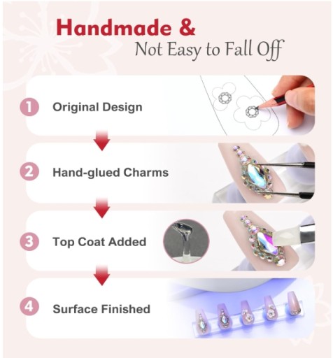 Oryginalny projekt przez doświadczonego techniki paznokci z 20-letnim doświadczeniem, z wykwintnymi kamieniami 3D i cukrem, niech te prasy paznokci przyniosą więcej blasku