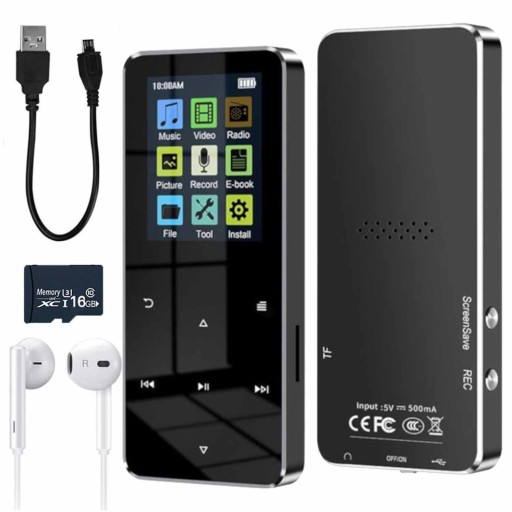 Odtwarzacz MP3 Bluetooth 5.0 Wbudowana pamięć 16 GB z możliwością nagrywania i oglądania