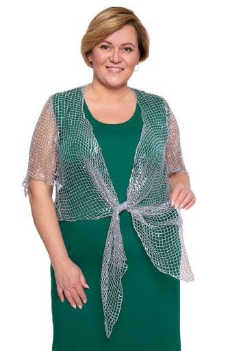 Ta wyjściowa narzutka, w srebrnym kolorze, sprawdzi się przy wielu odświętnych okazjach jako uzupełnienie szykownej stylizacji. Dzięki naszytym cekinom narzutka będzie ładnie odbijała światło i dodawała blasku skórze.