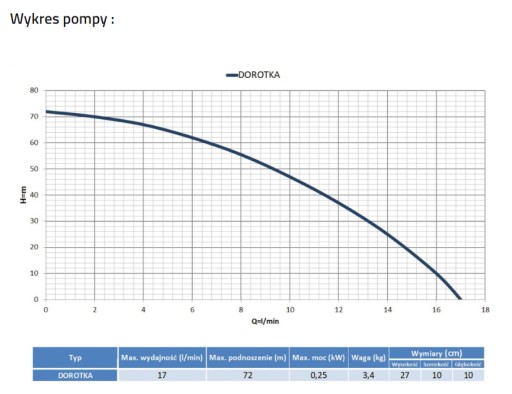 W komplecie z pompą zapasowa membrana oraz linka umożliwiającą zatopienie pompy.