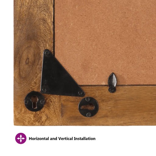 - Lite drewno mango: drewno mango jest mocnym drewnem tropikalnym, z którego powstają solidne meble. Jego piękne usłojenie sprawia, że każdy egzemplarz jest unikatowy i nieco odmienny od pozostałych. Rama z litego drewna mango nadaje lustru rustykalny urok, zapewniając jednocześnie trwałość.