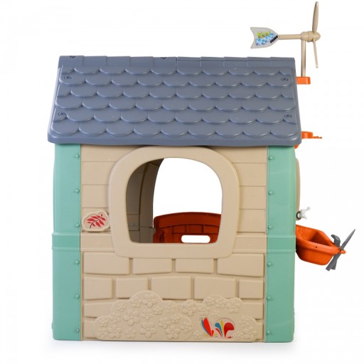 Domek FEBER Recycle ECO to domek wykonany w 90% z ekologicznych materiałów tworzywa sztucznego pochodzącego z recyklingu. Zwycięzca ToyAward 2024 na największych targach zabawek w Norymberdze za swoją wszechstronną edukacje o ekologii. To doskonale wykonany domek zabaw, w którym znajdują się wszystkie aktywności potrzebne maluchom do wzbudzenia ciekawości w przyrodzie. Świetne miejsce i świetna nauka dla dzieci na temat segregowania śmieci, recyklingu, ekologicznego uprawiania roślin oraz produkcji zielonej energii dzięki turbinie wiatrakowej oraz panelom słonecznym na dachu. W zestawie 2 kosze do recyklingu (żółty i niebieski), mały ogródek (w doniczkach) i narzędzia. To świetna aktywność na świeżym powietrzu dla dzieci. Można bawić się w sadzenie nasion i obserwowanie wzrostu roślin. Wyposażony jest również w karmnik dla ptaków.A woda deszczowa jest idealna do podlewania roślin lub kwiatów. Wiatrak i imitacja panelu słonecznego dają niesamowite funkcje do nauki o zrównoważonych energiach! Odporne, łatwe w montażu i wyposażone w system Anti UV zapobiegający utracie koloru i zwiększający odporność tworzywa.