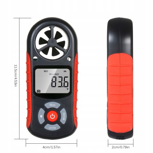 Zakres prędkości wiatru: 0~30m/s; 0 ~ 5860 stóp/min; 0 ~ 55 węzłów; 0~90km/h; 0~65 mil/h