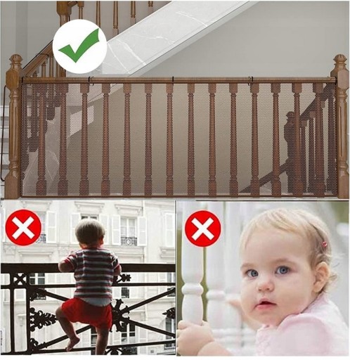 wysoka jakość: ogrodzenie bezpieczeństwa dziecka jest dostarczane z siatką 300*74cm, 15 plastikowymi klamrami i 25 linami, siatka bezpieczeństwa dziecka na schodach wykonana jest z zagęszczonej twardej siatki, trwałej, zmywalnej i odpornej na warunki atmosferyczne. Drobne wykonanie i konstrukcja otworu o strukturze plastra miodu dla doskonałej widoczności.