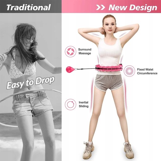 Design modernizacji: Inteligentny obręcz sportowy wykonany jest z twardego tworzywa sztucznego ABS, aby zapobiec starzeniu się sprzętu. W odróżnieniu od normalnego pierścienia fitness, użytkownik może zmienić liczbę bloków ciężarowych w kuli ciężarowej zgodnie z własną nośnością, a tym samym zmienić swoje ćwiczenia. Jest również połączony z 24-węzłami regulowanymi, aby dopasować talię i utrzymać, że nie spada podczas używania go, więc początkujący może go używać również.