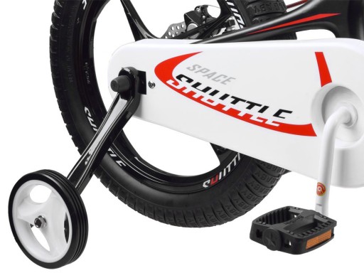 Rowerek renomowanej firmy Royal Baby Space Shuttle 16" to pierwszy rower wysokiej jakości dla amatora dwóch kółek, idealnie nadaje się dla prawdziwego podwórkowego kierowcy. Magnezowa, lekka rama o zakrzywionej powierzchni i gładkich liniach. Regulowana kierownica profesjonalnie wyprofilowana z bezpiecznymi gumowymi manetkami, z zamkniętą osłoną regulacji, dzwonkiem. Komfortowe, siodełko, 16 calowe koła wysokiej jakości opona, podwójnie bezpieczny układ hamulcowy z podwójnymi hamulcami tarczowymi zapewnią komfortową i stabilną jazdę. Boczne kółka zapewniające na początku utrzymanie równowagi, aby dziecko szybciej nauczyło się samodzielnej jazdy. Pełna osłona łańcucha chroniąca przed zranieniem i pobrudzeniem. Składany podnóżek dzięki, któremu dziecko bezpiecznie oprze rowerek po zakończonej jeździe. Dobrej jakości komponenty nie sprawiające problemów w użytkowaniu. Kolorystyka i grafika znajdująca uznanie w oczach właściciela i kolegów z podwórka. Rowerek ten jest świetnie dopracowany, odległości między kierownicą, siodełkiem a pedałami są proporcjonalnie zachowane co zapewnia płynną i wygodną jazdę.