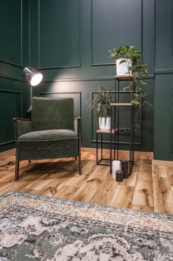 - Dekoracyjne formatki: Blaty wykonane są z wysokiej jakości tworzywa imitujące drewno, które wprowadza ciepły i naturalny akcent do aranżacji.
