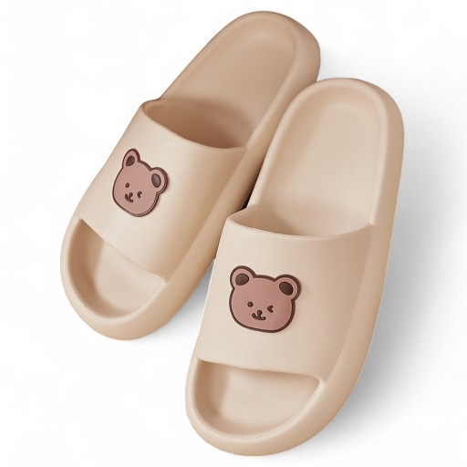 Świetne damskie gumowe klapki na płaskiej podeszwie, paseczek zdobiony uroczym misiem. Idealny wybór na wakacje!