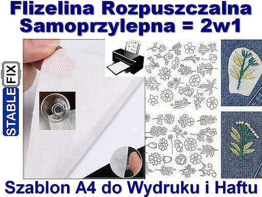 FLIZELINA 2w1 - Rozpuszczalna i Samoprzylepna - szablon formatu A4 do wydrukowania wzorów